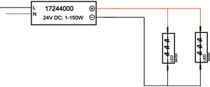 LED-Netzgerät 24 V DC, schaltbar. Material: Kunststoff, Schutzart raumseitig: nach DIN EN 60529: IP20, Schutzklasse: (EN 61140) II, Spannung: 24 V, Leistung: 150 W, Art der Dimmung: schaltbar.