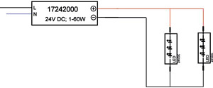 LED-Netzgerät 24 V DC, schaltbar. Material: Kunststoff, Schutzart raumseitig: nach DIN EN 60529: IP20, Schutzklasse: (EN 61140) II, Spannung: 24 V, Leistung: 60 W, Art der Dimmung: schaltbar.