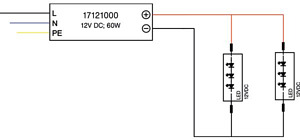 LED-Netzgerät 12 V DC, schaltbar. Dieses Netzgerät ist durch Sicherungseinrichtungen gegen Überspannung und Kurzschluss sowie thermische und elektrische Überlastung geschützt. Material: Aluminium, Schutzart raumseitig: nach DIN EN 60529: IP65, Schutzklasse: (EN 61140) I, Spannung: 12V, Leistung: 60W, Art der Dimmung: schaltbar.