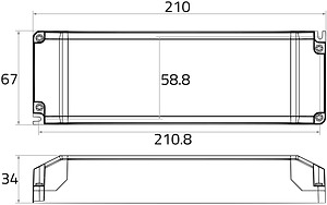 dimmbares LED Netzgerät, Konstantspannung für die Innenanwendung, IP20 Schutzklasse II, CE, REACH, RoHS Schutz gegen Kurzschluss, Überlast und Übertemperatur, SELV Leitungsquerschnitt Pushklemmen: 0,75 - 2,5 qmm Gehäuse: Kunststoff Eingangsspannung: 220-240 V AC Leistung: 33,6-100,8 Watt Ausgangsstrom: 4,2 A Ausgangsspannung: 24 Volt LxBxH in mm: 210 x 67 x 34 Temperaturbereich: -25 bis +50°C dimmbar über Phasenanschnittsdimmer 10-100%