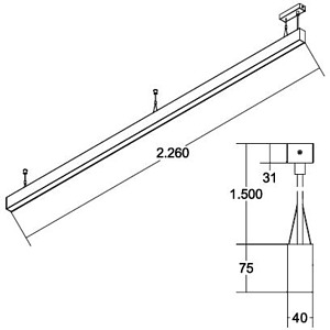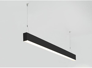 LED-Pendel-Profilleuchte direkt/indirekt, schwarz, rechteckig. Pendelmontage, Deckenmontage Ausführung: ohne Fassung, Montageart: Pendelmontage, Montageort: Deckenmontage, Material: Aluminium / Acryl, Schutzart raumseitig: nach DIN EN 60529: IP20, Schutzklasse: (EN 61140) I, Spannung: 230V AC 50Hz, Leistung: 94,9 W, Lichtstrom: 10.260 lm, Farbtemperatur: 3.000 K, Lichtfarbe: weiß, Abstrahlwinkel: 80°, Verstellbarkeit: nicht verstellbar, Mit Betriebsgerät: Ja, Art der Dimmung: DALI.