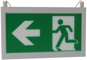 Zubehör für Leuchtentyp GuideLed 10x21 bis 10x24: Piktogrammscheibe, Pfeil links/blind gem. ISO 7010, inkl. LEDs. Ausführung: sonstige Bedeutung des Piktogramms: Rettungsweg Doppelseitig: Ja