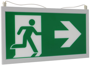 Zubehör für Leuchtentyp GuideLed 11x21 bis 11x24: Piktogrammscheibe, Pfeil links/rechts, gem. ISO 7010, inkl. LEDs. Ausführung: sonstige Bedeutung des Piktogramms: Rettungsweg Doppelseitig: Ja