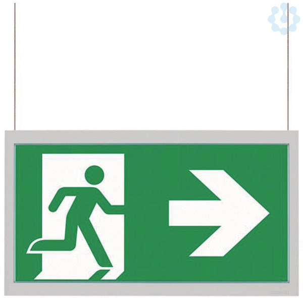Zubehör für Leuchtentyp GuideLed 11x25 und 11x26: Piktogrammscheibe, Pfeil links/rechts gem. ISO 7010, für Seilmontage, inkl. LEDs. Ausführung: sonstige Bedeutung des Piktogramms: Rettungsweg Doppelseitig: Ja