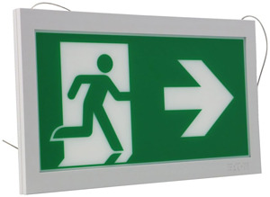 Zubehör für Leuchtentyp GuideLed 10x25 und 10x26: Piktogrammscheibe, Pfeil rechts/blind gem. ISO 7010, für Seilmontage, inkl. LEDs. Ausführung: sonstige Bedeutung des Piktogramms: Rettungsweg Doppelseitig: Ja