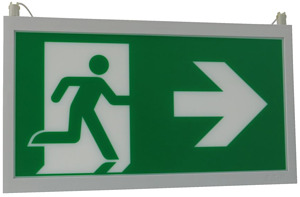 Zubehör für Leuchtentyp GuideLed 11x21 bis 11x24: Piktogrammscheibe, Pfeil rechts/blind gem. ISO 7010, inkl. LEDs. Ausführung: sonstige Bedeutung des Piktogramms: Rettungsweg Doppelseitig: Ja