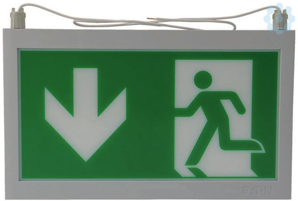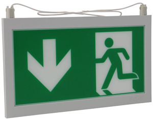 Zubehör für Leuchtentyp GuideLed 10x21 bis 10x24: Piktogrammscheibe, Pfeil unten/blind gem. ISO 7010, inkl. LEDs. Ausführung: sonstige Bedeutung des Piktogramms: Rettungsweg Doppelseitig: Ja