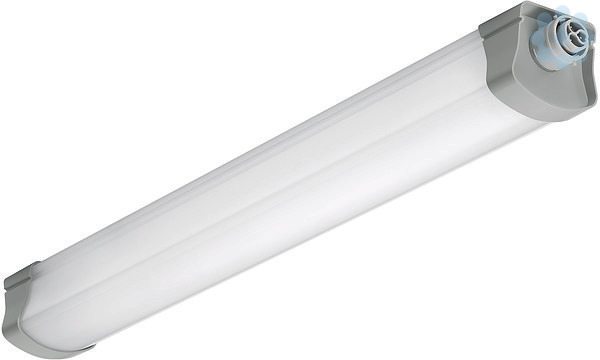 LED Profilleuchte mit integriertem LED-Konverter. Geeignet für Wand- und Deckenmontage. Zugelassen für den Einsatz in Innen- und geschützten Außenbereichen. Schnellmontage mit Deckenklammer aus Edelstahl (Leuchte einclipsbar), ausrichten der Leuchte durch den variablen Verschiebebereich ±100mm. Profil aus schlagfestem Polycarbonat (PC) in lichtsteuernder opalisierter Optik. Endkappen aus schlagfestem Polycarbonat (PC) grau. Deckenaufhellung mit hohem Indirektanteil von 16 %. Geräteträger aus Stahlblech verzinkt in weiß. Leuchte mit begrenzter Oberflächentemperatur, für Bereiche, in denen leitfähige Stäube zu erwarten sind.
