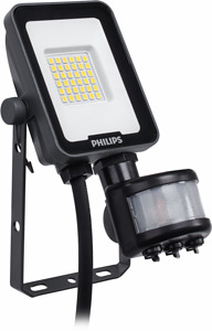 Aluminiumdruckguss, Grau, Netzteil (Ein/Aus), Bewegungs- und Lichtsensor (ein/aus), 1200 lm, 10 W, 120 lm/W, 4000 K, (0.380, 0.380) SDCM 5, CRI80, Symmetrisch breitstrahlend, Schutz gegen Eindringen von Staub, strahlwassergeschützt, 2 J verstärkt, SchutzklasseI, Leuchtenüberspannungsschutz bis 2kV im Gegentaktmodus und bis 2 kV im Gleichtaktmodus, Kabel (1,0m) ohne Steckverbinder, Freie Anschlussleitungen