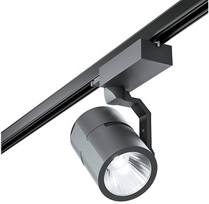 LED-Schienenstrahler, 27W, schwarz. Ausführung in kompakter Bauform für die harmonische Implementierung in stimmige, architektonische Raumkonzepte. Montageart: Anbaumontage, Montageort: Deckenmontage, Material: Aluminium, Schutzart raumseitig: nach DIN EN 60529: IP20, Schutzklasse: (EN 61140) I, Spannung: 230V AC 50Hz, Leistung: 27W, Lichtfarbe: weiß, Verstellbarkeit: Drehbar und Kopfverstellbar, mit Betriebsgerät, Art der Dimmung: schaltbar.