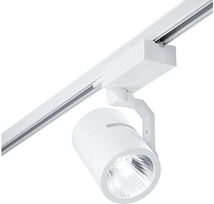 LED-Schienenstrahler, 27W, weiß, rund. Ausführung in kompakter Bauform für die harmonische Implementierung in stimmige, architektonische Raumkonzepte. Montageart: Anbaumontage, Montageort: Deckenmontage, Material: Aluminium, Schutzart raumseitig: nach DIN EN 60529: IP20, Schutzklasse: (EN 61140) I, Spannung: 230V AC 50Hz, Leistung: 27W, Anzahl der Leuchtmittel / Fassungen: 1.0 Stk, Lichtstrom: 2.783 lm, Farbtemperatur: 3.500 K, Lichtfarbe: weiß, Abstrahlwinkel: 24°, Verstellbarkeit: Drehbar und Kopfverstellbar, mit Betriebsgerät, Art der Dimmung: schaltbar.