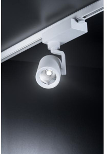 LED-Schienenstrahler, dreh- und schwenkbar, schaltbar, schwarz matt, rund. Ausführung in kompakter Bauform für die harmonische Implementierung in stimmige, architektonische Raumkonzepte. Wärmeableitung: passiv (ohne Lüfter), Rotationswinkel: dreh- / schwenkbar, Maße Leuchte: Ø 100 mm x 245 mm, Gewicht: 1,4 kg. Inkl. Betriebsgerät, schaltbar, Leistungsfaktor > 0,9 (230 V AC 50 Hz). Leuchte inkl. Euro-Adapter für Standard-3-Phasen-Schienen. Ausführung: ohne Fassung, Montageart: Anbaumontage, Montageort: Deckenmontage, Material: Aluminium / Glas / Kunststoff, Schutzart raumseitig: nach DIN EN 60529: IP20, Schutzklasse: (EN 61140) I, Spannung: 230V AC 50Hz, Leistung: 32 W, Anzahl der Leuchtmittel / Fassungen: 1 Stück, Lichtstrom: 2.600 lm, Farbtemperatur: 4.000 K, Lichtfarbe: weiß, Abstrahlwinkel: 38°, Verstellbarkeit: drehbar und kopfverstellbar, Mit Betriebsgerät: Ja, Art der Dimmung: schaltbar.