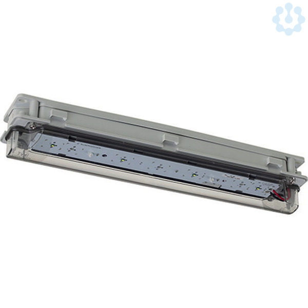 Sicherheitsleuchte gem. DIN EN 60598-1, DIN EN 60598-2-22 und DIN EN 1838. Modular aufgebaute Leuchte bestehend aus: Schnellmontagesatz, klarer IP54 Schutzhaube, Leuchtengehäuse aus 850°C glühdrahtbeständigem, halogenfreiem Polycarbonat zur werkzeuglosen Montage auf dem Schnellmontagesatz. Symmetrische Lichtverteilung für flächige Ausleuchtung mit mind. 1lx nach DIN EN 1838 für Lichtpunkthöhen bis 9 m. Maximaler Abstand Leuchte zu Leuchte:> 12 m ab 3 m Lichtpunkthöhe und > 14 m ab 5 m Lichtpunkthöhe (Berechnungsgrundlage: mind. 1lx auf Fluchtwegmitte Wartungsfaktor = 0,8). Hohe Lebensdauer > 50000 h durch optimierte LED-Betriebsbedingungen. Spezieller LED-Konverter mit integriertem Überwachungsbaustein für Einzelleuchtenüberwachung mit 20-stelligen Adressschaltern. Mischbetrieb der Schaltungsarten (Bereitschaftslicht, Dauerlicht oder geschaltetes Dauerlicht) innerhalb eines Stromkreises ohne zusätzliche Daten- oder Schaltleitung zu den Leuchten in Verbindung mit geeigneten Gruppen- oder Zentralbatterieanlagen mit STAR-Technik möglich. Zulässiger Temperaturbereich: -20°C bis + 40°C. Montageart: Deckenanbau Leuchtmittel: LED Lampenleistung: 4 W Schaltung: sonstige Werkstoff des Gehäuses: Kunststoff Gehäusefarbe: grau Werkstoff der Abdeckung: Kunststoff transparent Art der Kennzeichnung: nicht zutreffend Überwachungseinrichtung: Überwachungsbaustein (zentral versorgtes System) Ballwurfsicher: Nein Schaltungsart: Dauerschaltung/Bereitschaftsschaltung Mit Fernschalteranschluss (VDE 0100-718, VDE 0108-100): Ja Einspeisung: zentral (Zentralbatterie) Nennspannung: 220 - 240 V Schutzklasse: II Schutzart (IP): IP54 Mit Leuchtmittel: Ja Länge: 331 mm Breite: 64 mm Höhe/Tiefe: 55 mm Lichtstrom bei Notbetrieb: 100 %