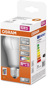 | Herstellerartikelnummer | LEDSCLA60REM-9W/827-230VFR-E27-4X1 |