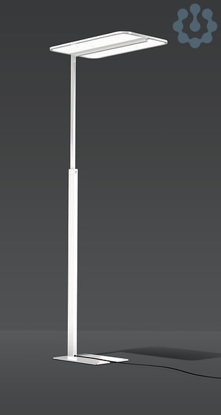 LED-Stehleuchte für Einzel- und Doppelarbeitsplatz mit extrem flachen Leuchtenkopf. Flache Fußplatte aus Stahl für hohe Standsicherheit und platzsparende Positionierung an Büromöbeln. Kopf und Säule aus Aluminium. Ergonomisch optimal in die Leuchtensäule integrierter Folientaster. Leuchte pulverbeschichtet. Leuchtenkopf (L 715 x B 440 x H 15 mm). Fußplatte (405 x 300 mm) mit schmaler Öffnung (35 mm). Diffusor und Lightguide aus vergilbungsfreiem Kunststoff (PMMA). Lichtaustritt direkt 60%, indirekt 40%. Lichtlenkung direkt über Diffusor Kunststoff mikroprismatisch. Lichtlenkung indirekt über Diffusor Kunststoff opal. Ausführung mit intelligenter Anwesenheitssteuerung und Helligkeitssensorik. Betriebsgerät im Standrohr integriert. Mit Anschlussleitung 2 m inklusive Schutzkontaktstecker (Schuko). Hervorragend geeignet für Bürobereiche (UGR < 19) und Bildschirmarbeitsplätze (BAP) gem. DIN EN 12464-1.