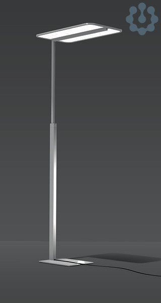 LED-Stehleuchte für Einzel- und Doppelarbeitsplatz mit extrem flachen Leuchtenkopf. Flache Fußplatte aus Stahl für hohe Standsicherheit und platzsparende Positionierung an Büromöbeln. Kopf und Säule aus Aluminium. Ergonomisch optimal in die Leuchtensäule integrierter Folientaster. Leuchte pulverbeschichtet. Leuchtenkopf (L 715 x B 440 x H 15 mm). Fußplatte (405 x 300 mm) mit schmaler Öffnung (35 mm). Diffusor und Lightguide aus vergilbungsfreiem Kunststoff (PMMA). Lichtaustritt direkt 60%, indirekt 40%. Lichtlenkung direkt über Diffusor Kunststoff mikroprismatisch. Lichtlenkung indirekt über Diffusor Kunststoff opal. Ausführung mit intelligenter Anwesenheitssteuerung und Helligkeitssensorik. Betriebsgerät im Standrohr integriert. Mit Anschlussleitung 2 m inklusive Schutzkontaktstecker (Schuko). Hervorragend geeignet für Bürobereiche (UGR < 19) und Bildschirmarbeitsplätze (BAP) gem. DIN EN 12464-1.