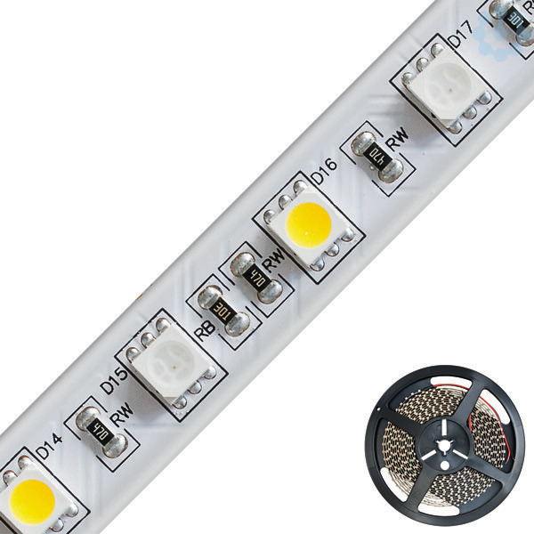 LED-Strip - IP54 - 24V/DC - 12W/m - 60LED/m - 5m-Rolle - RGB+W(3000K)