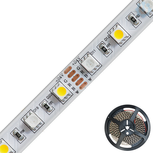 LED-Strip - IP54 - 24V/DC - 12W/m - 60LED/m - 5m-Rolle - RGB+W(3000K)