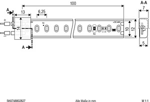 Der LED-Strip kann in jeder Wunschlänge (Angabe in Meter), bis maximal 50m, unter Beachtung des Teilungsmaßes von 100mm konfektioniert werden. Die maximale Einspeiselänge bei einseitiger Einspeisung beträgt 10m. Der konfektionierte Strip wird standardmäßig einseitig mit einer 0,5m langen Anschlussleitung (Kabelquerschnitt: 0,5mm²) ausgeliefert. Wichtig: Um ein Überhitzen des Strips zu vermeiden, darf dieser nur auf wärmeleitenden Untergründen verbaut werden, vorzugsweise auf bzw. in Aluminiumprofilen. Der Strip ist außerdem UV-beständig. ta: -20°C - 45°C.