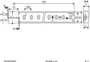 Der LED-Strip kann in jeder Wunschlänge (Angabe in Meter), bis maximal 50m, unter Beachtung des Teilungsmaßes von 100mm konfektioniert werden. Die maximale Einspeiselänge bei einseitiger Einspeisung beträgt 15m. Der konfektionierte Strip wird standardmäßig einseitig mit einer 0,5m langen Anschlussleitung (Kabelquerschnitt: 0,5mm²) ausgeliefert. Wichtig: Um ein Überhitzen des Strips zu vermeiden, darf dieser nur auf wärmeleitenden Untergründen verbaut werden, vorzugsweise auf bzw. in Aluminiumprofilen. Der Strip ist außerdem UV-beständig. ta: -20°C - 45°C.