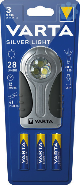 Das VARTA Silver Light ist die ideale Taschenlampe für jede Anwendung. Die drei Einzellupenlinsen erzeugen einen breiten Strahl bei geringem Energieverbrauch. Auf diese Weise ist es die perfekte Leuchte für Werkstatt, Garage, Haushalt, Wohnwagen, Boot, Schuppen oder für den Garten. Weitere mögliche Anwendungsbereiche sind: Aktivitäten im Innen- und Außenbereich wie Camping, Angeln, Wandern, Klettern, Jagen, Gehen mit dem Hund, Reparaturen im Haushalt, Höhlenerkundung, Notfälle und Stromausfälle.