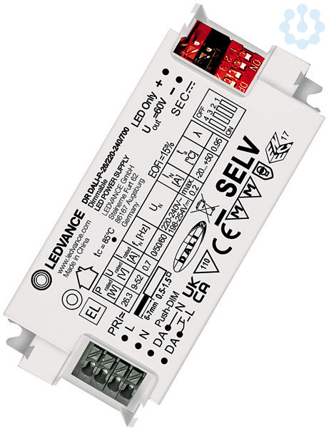 Kompakter Konstantstrom LED-Treiber mit DALI-Dimmschnittstelle. Produkteigenschaften: 1 Kanal DALI-2 zertifiziertes LED Betriebsgerät. Versorgungsspannung: 220…240 V. Betrieb mit Schutzkleinspannung (SELV): < 60 V. Verfügbar mit Ausgangsstrombereich: bis zu 1.400 mA. Montageart: Unabhängig und Einbau in Leuchten. Geeignet für Notlichtbeleuchtung gemäß EN 60598-2-2 mit einem Notlichtfaktor EOFI=15%. Geeignet zur Anwendung in Möbeln. Produktvorteile: Individuelle Stromeinstellung am Gerät mit Dip-Schaltern in 50mA Schritten. Push-DIM-Anwendung zur einfachen Steuerung. Geringes Flackern ermöglicht hohe Lichtqualität als auch guten visuellen Komfort. Hochqualitatives Dimmen von 1…100 %. Werkzeuglose Installation. 5 Jahre Garantie. Anwendungsgebiete: Leuchten der Schutzklassen I und II. Indoor SELV Installationen. Notstrombeleuchtung. Ein- und Anbau in Möbeln. Voutenbeleuchtung. Büros. Schule. Lagerbereiche. Einzelhandel.