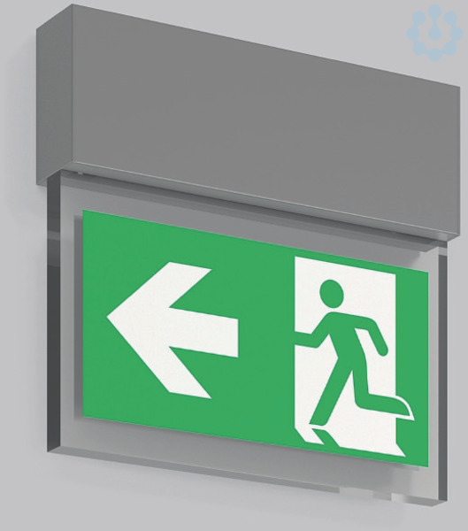 Leuchte zur Rettungswegkennzeichnung. Gehäuse Aluminium-Strangpressprofil eloxiert oder pulverbeschichtet. Displayscheibe Kunststoff hochtransparent mit Rettungszeichen einseitig. Betriebsgeräte integriert. Einzelbatteriesystem mit automatischem Selbsttest.