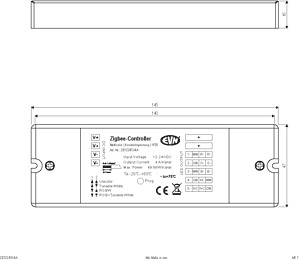Der ZigBee 3.0 LED-Multicolor-Empfänger kann für Unicolor-, Tunable-White-, RGB-, RGBW- und RGB+Tunable-White-Leuchten verwendet werden. Die Einstellung der jeweiligen Betriebsart erfolgt über Dipschalter. Geeignet für Leuchten mit einer Betriebsspannung von 12 und 24V/DC. Die tatsächlich zu verwendende Eingangsspannung ist abhängig von der benötigten Spannung der angeschlossenen Leuchten. 1x Eingang, so wie 1x Ausgang für 12-24V/DC und 5x Ausgang (RGBW). Die Schraubklemmen sind für Kabel von 0,5mm² - 1,5mm² geeignet. Technische Daten: ta: -20°C - 50°C, tc: 75°C, max. Ausgangsleistung je Kanal: 4A (48W bei 12V/DC und 96W bei 24V/DC). Die Ansteuerung erfolgt über ZigBee Funk-Sender mit 2,4GHz. Um auch größere Anlagen problemlos umsetzen zu können, können mehrere Controller als Master-Slave-Anwendung synchron gesteuert werden.