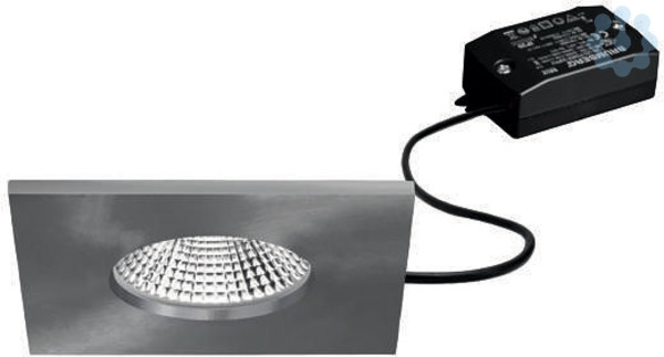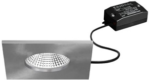 LED-Einbaudownlightset, IP65, schaltbar, nickel matt, quadratisch. Ausgeführt in kompakter Bauform für werkzeuglose Schnellmontage zum Deckeneinbau. Set inkl. Konverter für 230 V-Netzspannung, schaltbar, Maße Konverter: L 68 x B 35 x H 21 mm Montageart: Einbaumontage, Montageort: Deckenmontage, Material: Aluminium / Silikonkautschuk / PMMA, Schutzart raumseitig: nach DIN EN 60529: IP65, Schutzklasse: (EN 61140) II, Spannung: 230V AC 50Hz, Leistung: 7 W, Anzahl der Leuchtmittel / Fassungen: 1 Stück, Lichtstrom: 620 lm, Farbtemperatur: 3.000 K, Abstrahlwinkel: 36°, Verstellbarkeit: nicht verstellbar, Mit Betriebsgerät: Ja, Dimmbar: Nein, Art der Dimmung: schaltbar.