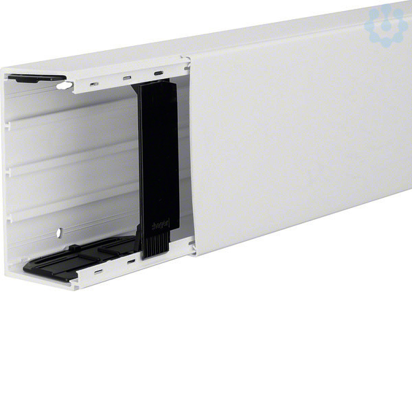 Leitungsführungskanal PVC witterungsbeständig/UV-stabil LFE 60x110mm reinweiß. Elektro-Installationskanal-System Leitungsführungskanal aus UV-stabilisiertem Kunststoff nach DIN EN 50085-1 zur Leitungsverlegung im Außenbereich. Kanalunterteil/-oberteil mit vorgestanzter Bodenlochung im Abstand von 125 mm mit vormontierten Kupplungen zur einfachen Ausrichtung bei Ein-Mann-Montage, vormontierte anstellbaren Rückhalteklammern und Trennwandeinbaumöglichkeit. Sicherer Deckelhalt nur mit Werkzeug zu öffnen. Erhöhte Schlagfestigkeit IK 10 gleichwertig. Hinweis: Schall- und Brandschutz-Maßnahmen sind fachgerecht auszuführen.