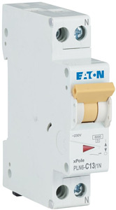 Leitungsschutzschalter, PLN6, 1-polig+N, Auslösecharakteristik: C, Bemessungsstrom In: 13 A, Bemessungsschaltvermögen nach IEC/EN 60898-1: 6 kA, Schaltgeräte für Wohn- und Zweckbau
