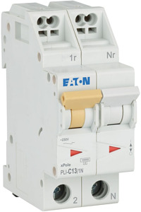 Leitungsschutzschalter, PLI, 1-polig+N, Auslösecharakteristik: C, Bemessungsstrom In: 13 A, Bemessungsschaltvermögen nach IEC/EN 60898-1: 10 kA, Schaltgeräte für Wohn- und Zweckbau
