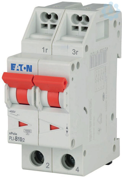 Leitungsschutzschalter, PLI, 2-polig, Auslösecharakteristik: B, Bemessungsstrom In: 10 A, Bemessungsschaltvermögen nach IEC/EN 60898-1: 10 kA, Schaltgeräte für Wohn- und Zweckbau