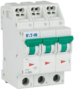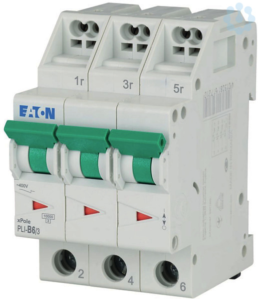 Leitungsschutzschalter, PLI, 3-polig, Auslösecharakteristik: B, Bemessungsstrom In: 6 A, Bemessungsschaltvermögen nach IEC/EN 60898-1: 10 kA, Schaltgeräte für Wohn- und Zweckbau