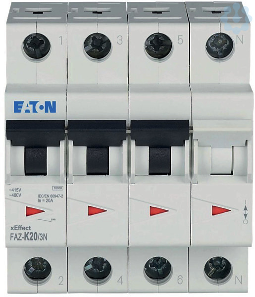 Leitungsschutzschalter, FAZ, 3-polig+N, Auslösecharakteristik: K, Bemessungsstrom In: 20 A, Schaltgeräte für Industrieanwendungen und gehobener Zweckbau