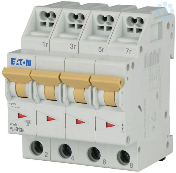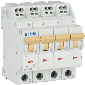 Leitungsschutzschalter, PLI, 4-polig, Auslösecharakteristik: B, Bemessungsstrom In: 13 A, Bemessungsschaltvermögen nach IEC/EN 60898-1: 10 kA, Schaltgeräte für Wohn- und Zweckbau