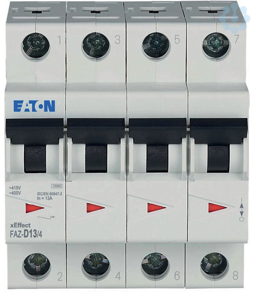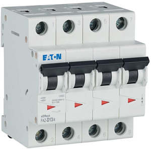 Leitungsschutzschalter, FAZ, 4-polig, Auslösecharakteristik: D, Bemessungsstrom In: 13 A, Schaltgeräte für Industrieanwendungen und gehobener Zweckbau