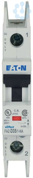 Leitungsschutzschalter, FAZ-NA, 1-polig, Auslösecharakteristik: D, Bemessungsstrom In: 35 A, Schaltgeräte für den Export nach Nordamerika (UL zertifiziert)