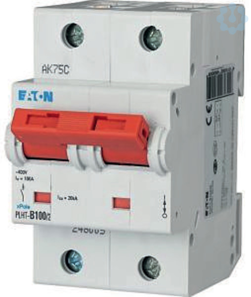 Leitungsschutzschalter PLHT, 2-polig, Auslösecharakteristik: D, Bemessungsstrom In: 100 A, Bemessungsschaltvermögen nach IEC/EN 60947-2, Schaltgeräte für Industrieanwendungen und gehobener Zweckbau