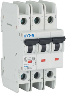 Leitungsschutzschalter, FAZ-NA, 3-polig, Auslösecharakteristik: B, Bemessungsstrom In: 4 A, Schaltgeräte für den Export nach Nordamerika (UL zertifiziert)