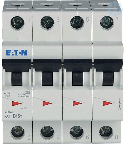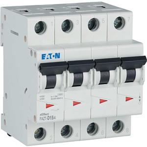 Leitungsschutzschalter, FAZ-T, 4-polig, Auslösecharakteristik: D, Bemessungsstrom In: 15 A, Schaltgeräte für Industrieanwendungen und gehobener Zweckbau