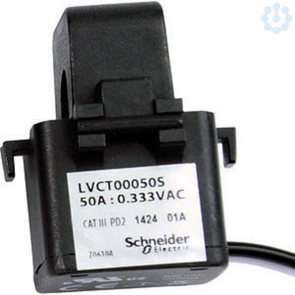 LVCT Kabelumbauwandler - nur für BCPM(-SC) Eingangsmessung, PowerLogic EM4235, Acti 9 iEM3455 und iEM3465. Abmessungen 40 x 23 x 26 / 23 mm, Innenmaße 11 x 10 mm, Bemessungsstrom_Ipn 50 A. Kabelumbauwandler vom Typ LVCT (Low Voltage Current Transformer mit 0,333 V) für Primärströme Ipn von 50 bis 2400 A und sekundärem Signal 0,333 V. Geeignet für BCPM und BCPM-SC Einspeisemessung (A/B), Retrofit Energiezähler iEM3455, iEM3465, Retrofit Enercept EM4235. Hinweis für eine 3-phasige Messung werden 3 Stück benötigt (bzw. 4 Stück für N-Leiter Messung mit EM4235). Genauigkeit 1% von 10% bis 100% Ipn. Frequenzbereich 50/60 Hz. Bemessungsisolationsspannung 300 V AC (LVCT0xxxx0S) bzw. für isolierte Kabel 600 V AC (LVCT0xxxx1S/2S/3S/4S). Betriebstemperatur 0ºC bis 70ºC (LVCT0xxxx0S/1S), -15ºC bis 60ºC (LVCT0xxxx2S/3S/4S). Länge Zuleitung 1,8 m (verlängerbar auf 10 m mit 1,0 mm²). Verschmutzungsgrad 2, Messkategorie III, Kabellänge 1,8 m.