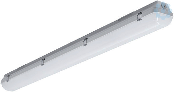 LED Feuchtraumwannenleuchte mit nicht-dimmbarem Konverter. Gehäuse aus schwer entflammbarem, glasfaserverstärktem Polyester (GRP), hellgrau. Alterungsbeständige, geschäumte PU-Dichtung. LED-Optiksystem auf weißem Geräteträger montiert. Opale Wanne aus UV-stabilisiertem Polycarbonat (PC) mit innenliegenden Längsprismen. Hochwertige Verschlüsse aus Edelstahl. Anschlussklemme in Steckkontakttechnik. Halogenfreie Verdrahtung. Geeignet für die Montage an Wand, Decke, Tragschiene (TRA) oder gependelt. Einfache Befestigung mit multifunktionalen Schnellmontage-Befestigungsklammern aus Edelstahl. Ausrichten der Leuchte durch den variablen Verschiebebereich um 60 mm. Zugelassen für den Einsatz in Innenbereichen oder überdachten Außenbereichen.