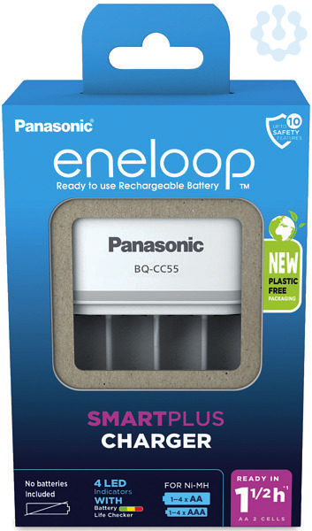 Bei dem eneloop Ladegerät BQ-CC55 handelt es sich um ein Schnellladegerät für sehr häufige Nutzung. Das Ladegerät ist mikroprozessorgesteuert und hat eine Einzelschachtüberwachung und -ladung. Über vier farbige LEDs wird der Ladestatus angezeigt. Es können 1 - 4 AA oder 1 - 4 AAA Akkus geladen werden. Je nach Modell ist das Ladegerät mit unterschiedlicher Bestückung erhältlich. eneloop trägt zu einem nachhaltigen Lebensstil bei und hat nun den nächsten wichtigen Schritt zum Umweltschutz vollbracht und die Produktverpackungen zu 100% plastikfrei gestaltet. Durch diese Umsetzung werden nun jährlich 15 Tonnen Plastik eingespart.