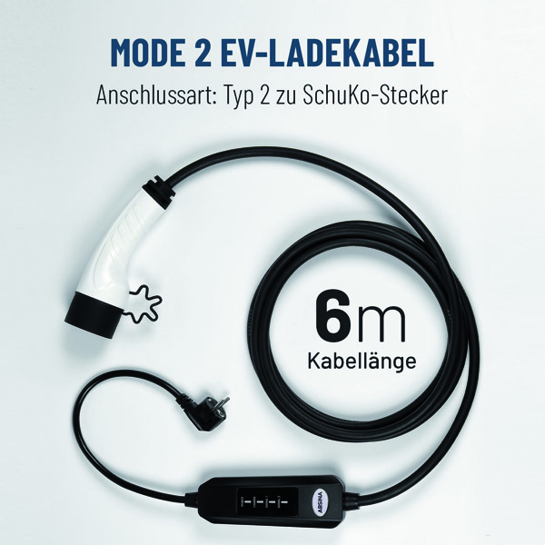 Die mobile AC-Ladeleitung von ABSINA mit Schuko-Ladestecker (Haushaltssteckdosen) und Infrastruktur-Ladestecker mit Wechselstrom (AC) dient zum Laden von Elektrofahrzeugen (EV) mit Typ 2 Fahrzeug-Inlets. Das Kabel ist kompatibel mit allen Typ 2 Infrastruktur-Ladedosen an Steckdosen mit 230V und allen Elektroautos und Hybriden, die mit dem Typ 2 Stecker ausgestattet sind. Zuverlässigkeit: Langlebigkeit