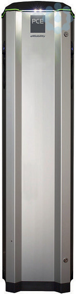 Ladesäule LS4 für Elektrofahrzeuge; Anschluss: 400V AC, 50Hz, 3-phasig; Anzahl der Ladepunkte: 2; Ladesteckdose Typ 2 mit Verriegelung; Max. Leistung pro Ladepunkt: 22kW; Ladestrom (max): 2 x 32A; Nennanschlussleistung: 44kW; Hauptschalter über alle Ausgänge; Absicherung:; 2 x FI Typ A + integr. DC-Fehlerstromerkennung (6mA); 2 x LS C 32A 4-polig; Autorisierung: RFID ; Controller: CC612 Laderegler; Kommunikationsschnittstelle: 4G-Modul; Kommunikation: OCPP 1.6 JSON, Modbus TCP; Backendsystem: keine Vorkonfiguration; BxHxT: 375x1400x208mm; Werkstoff des Gehäuses: Aluminium, eloxiert; Montageart: Bodenbefestigung; Schutzart: IP44; Schlagfestigkeit: IK10; Temperaturkontrolle/Heizung: Ja; Umgebungslufttemperatur: -25°C bis +40°C; fest eingebauter, digitaler Modbus Energiezähler, MID-zertifiziert; Folien-Design: PCE Standard; Folien-Platzierung: vorne