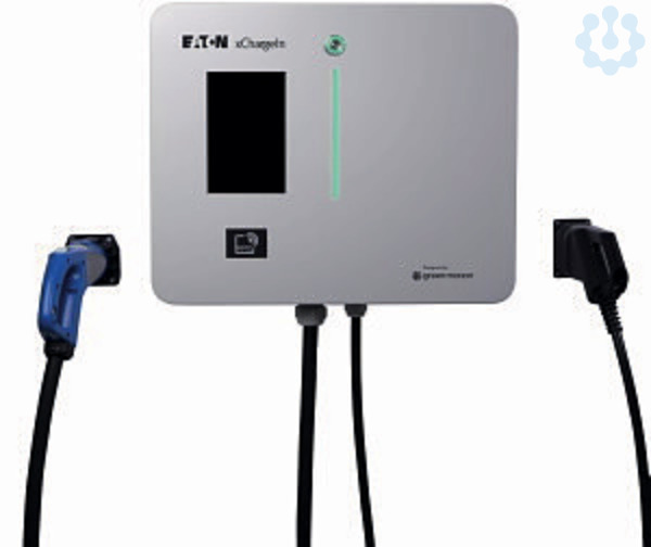 Die Eaton xChargeIn DC 22 ist eine Ladestation für Elektrofahrzeuge, mit Online-Funtion, CCS 2- und CHAdeMO-Anschlüssen, RJ45-Kommunikations-Schnittstelle, 4G und RFID-Zugangskontrolle