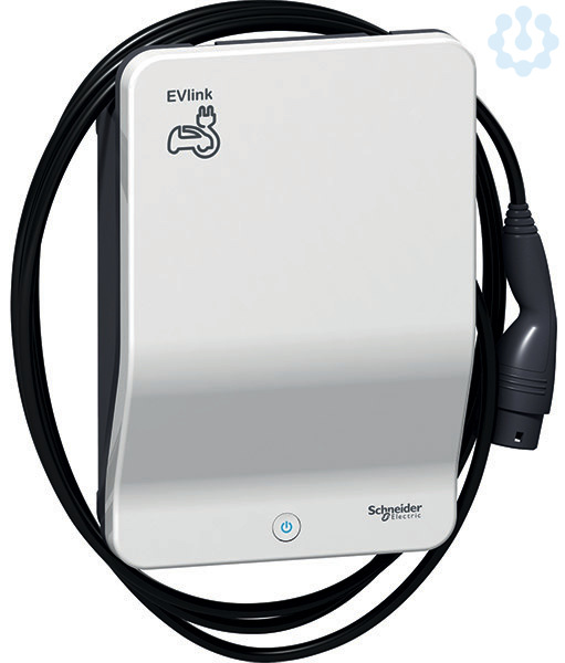 EVLink Wallbox G3+ mit Kabel. Wand-Ladestation - 1 Ladepunkt. Kabel max. Ladeleistung 22 kW, Typ 1 x 2, TE 3P+N. inkl. 6mA Gleichstromerkennung (ermöglicht den Einsatz eines FI Typ A). Für zu Hause und private Tiefgaragen. Für den Innen- oder Außenbereich (IP54). Zugriffskontrolle mit Schlüsselschalter. Zertifiziert nach CE, CB, IEC-EN 61851-1 / 61851-22, RoHS, REACH-SVHC, PEP Ecopassport.