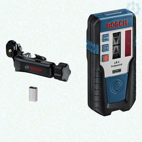 Laser-Empfänger LR 1. Mehr Nutzen durch Zubehör. Handlicher Empfänger für den Innen- und Außenbereich für Reichweiten bis 200 m in Kombination mit Rotationslaser GRL 400 H Professional und GRL 300 HV Professional. Optisches und akustisches Ausrichten der Laserstrahlebene, Staub- und Spritzwasserschutz (IP 65). Im Lieferumfang enthalten: Halterung (1 608 M00 70F), 1x 9 V-Blockbatterie (6LR61)