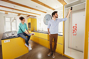 Digitaler Laser-Entfernungsmesser Zamo. Macht Messen einfach. Präzises Messen von Strecken und Abständen mit Lasertechnologie. Intuitive Handhabung dank einfacher Ein-Knopf-Bedienung. Klein, kompakt und handlich für jede Tasche. Gut ablesbares Display mit Hintergrundbeleuchtung. Messen bis zu 20 m ab Hinterkante. Speicherung des letzten Messwerts. Softgrip für bequeme Handhabung. Modernes Produktdesign. Batterien 2 x 1,5-V-LR03 (AAA).